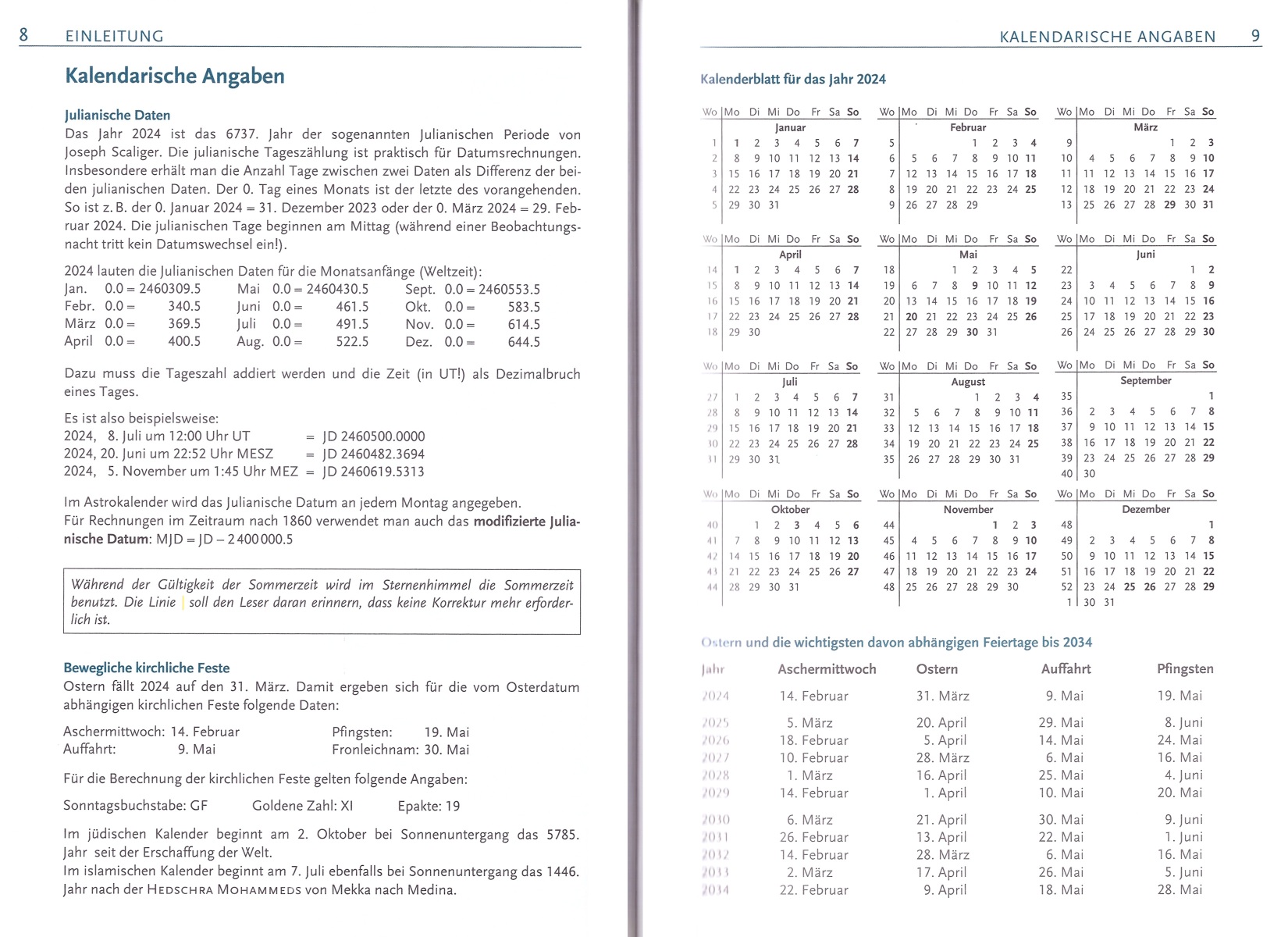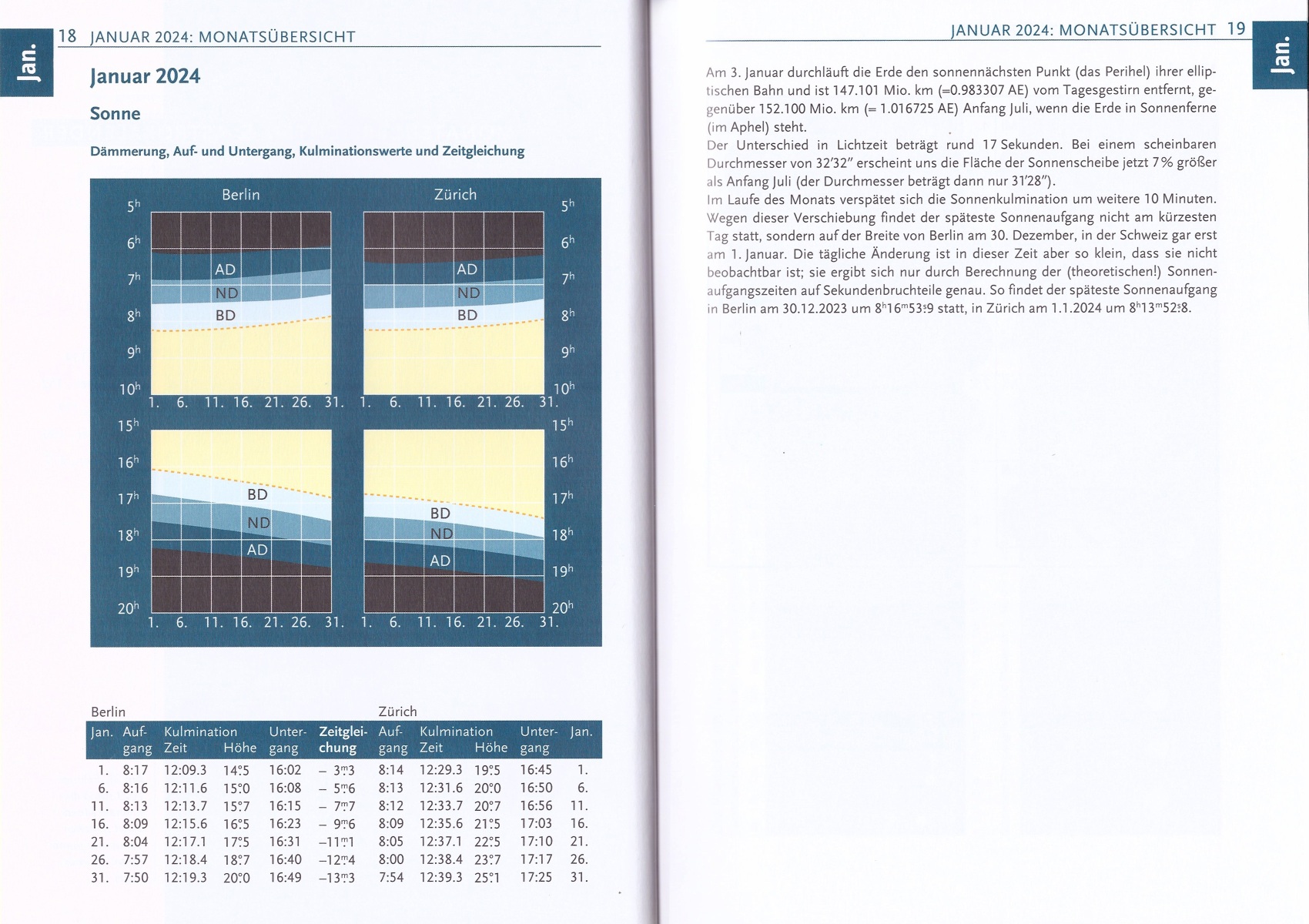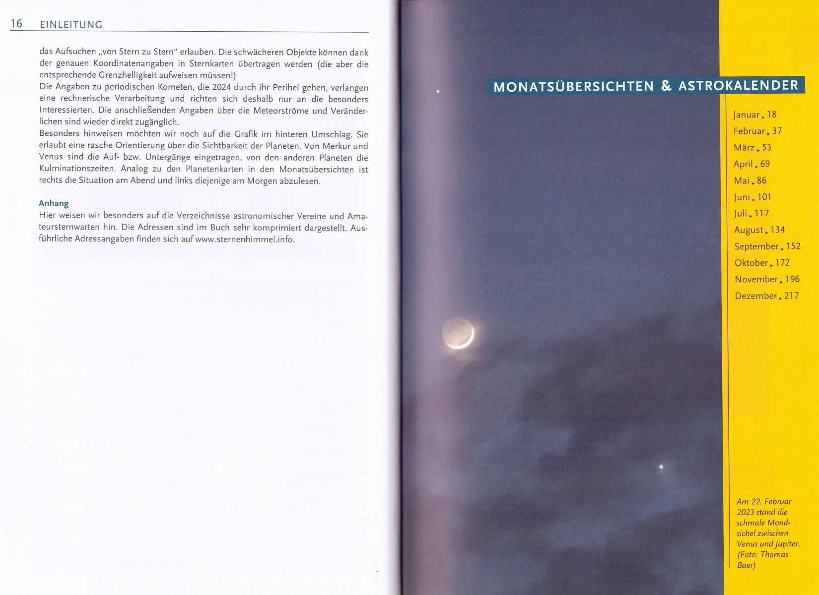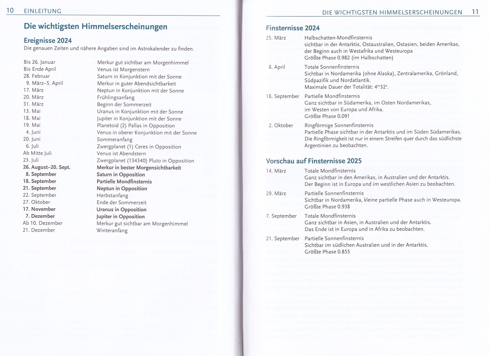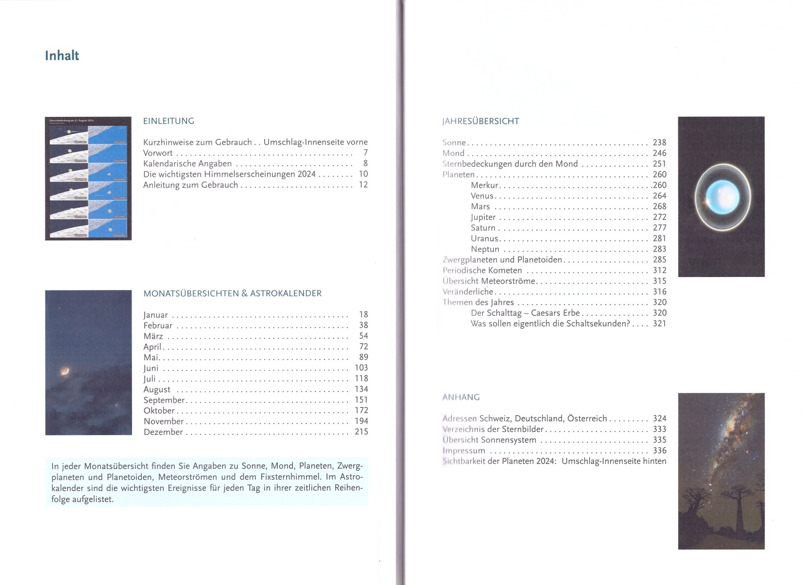 Informationen zur totalen Sonnenfinsternis am 8. April 2024 (auf Seite 73) und zur ringförmigen Sonnenfisternis am 2. Oktober (ab Seite 173) findet man ebenfalls. Allerdings sind beide von Europa aus nicht zu beobachten.